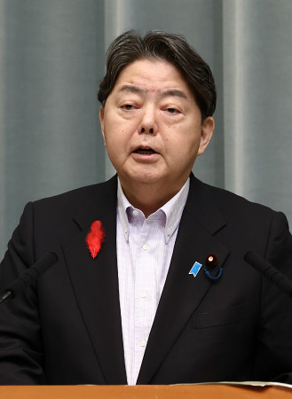 林芳正官房長官は9日の記者会見で、イスラエルとイスラム組織ハマスが和平案の第1段階で合意したことについて「事態の沈静化と2国家解決の実現に向けた重要な一歩だ」と歓迎した=首相官邸 【時事通信社】