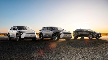 トヨタ自動車は9日、電気自動車(EV)「bZ4X」を一部改良し、同日から販売を始めたと発表した。充電1回での航続距離は最大746キロと従来比約25%向上し、国内EVでは最長となる。(同社提供) 【時事通信社】