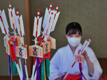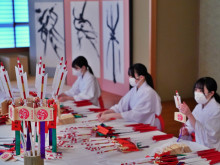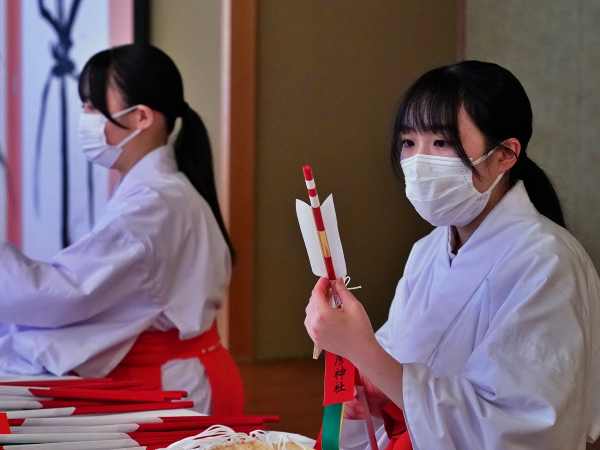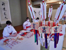 伊勢・猿田彦神社で巫女による破魔矢作り