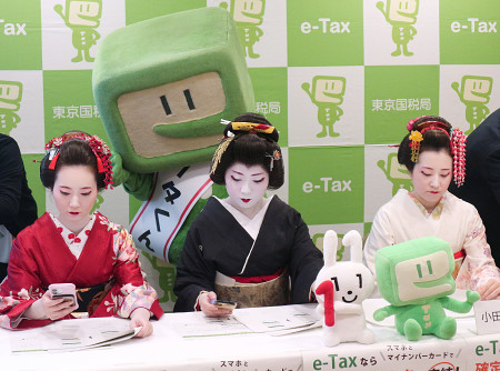 箱根湯本芸能組合(神奈川県箱根町)の芸者が8日、スマートフォンを利用した確定申告を体験した。体験した芸者の1人は「とても簡単に手続きでき、今年は期限間際に慌てることもなさそう」と語った。 【時事通信社】