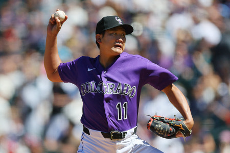 米大リーグは5日、各地で行われ、ロッキーズの菅野(写真)はフィリーズ戦に先発して6回1失点で移籍後初勝利を挙げた=デンバー 【AFP時事】