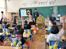 同校4年生20人に向けて行った特別授業は、子どもたちに素晴らしい地域に住んでいることを再認識してもらい、地域への愛着を深めてもらおうと「誇れる観光地発信事業」の一環で、志摩市観光・プロモーション課が企画。志摩市の人口や観光地、魅力などについて説明した後、志摩ノ海関への質問コーナーなどを設けた。