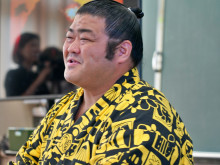 志摩市出身の現役力士の志摩ノ海関が10月2日、出身地にある志摩小学校(志摩市志摩町)で特別授業を行った。
