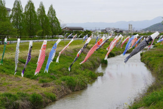二見興玉神社(伊勢市二見町)が4月21日、ふたみ保育園(伊勢市二見町)に同園の園児142人分のこいのぼりを贈った。