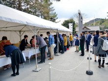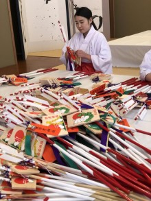 現在は、長さ約4.21メートル(13尺9寸)、幅約30センチ(1尺)、厚さ約15センチ(5寸)のヒノキの敷板613枚を橋げたに張り付ける作業が進められ、先月9日から始まり約400枚が貼り付けられたと言う。作業はお盆ごろまで行われ、敷板を小づちでたたく「木殺(こな)し」作業が参拝者の目と耳を楽しませている。