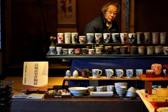おかげ横丁内で陶器や漆器などを販売する「他抜きだんらん亭」(伊勢市宇治中之切町)で現在、志摩市在住の陶芸家・高橋武男さんの作陶展が開かれている。