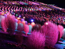 志摩市観光農園クリスマスライトアップ 5200本のコキア、色とりどりに