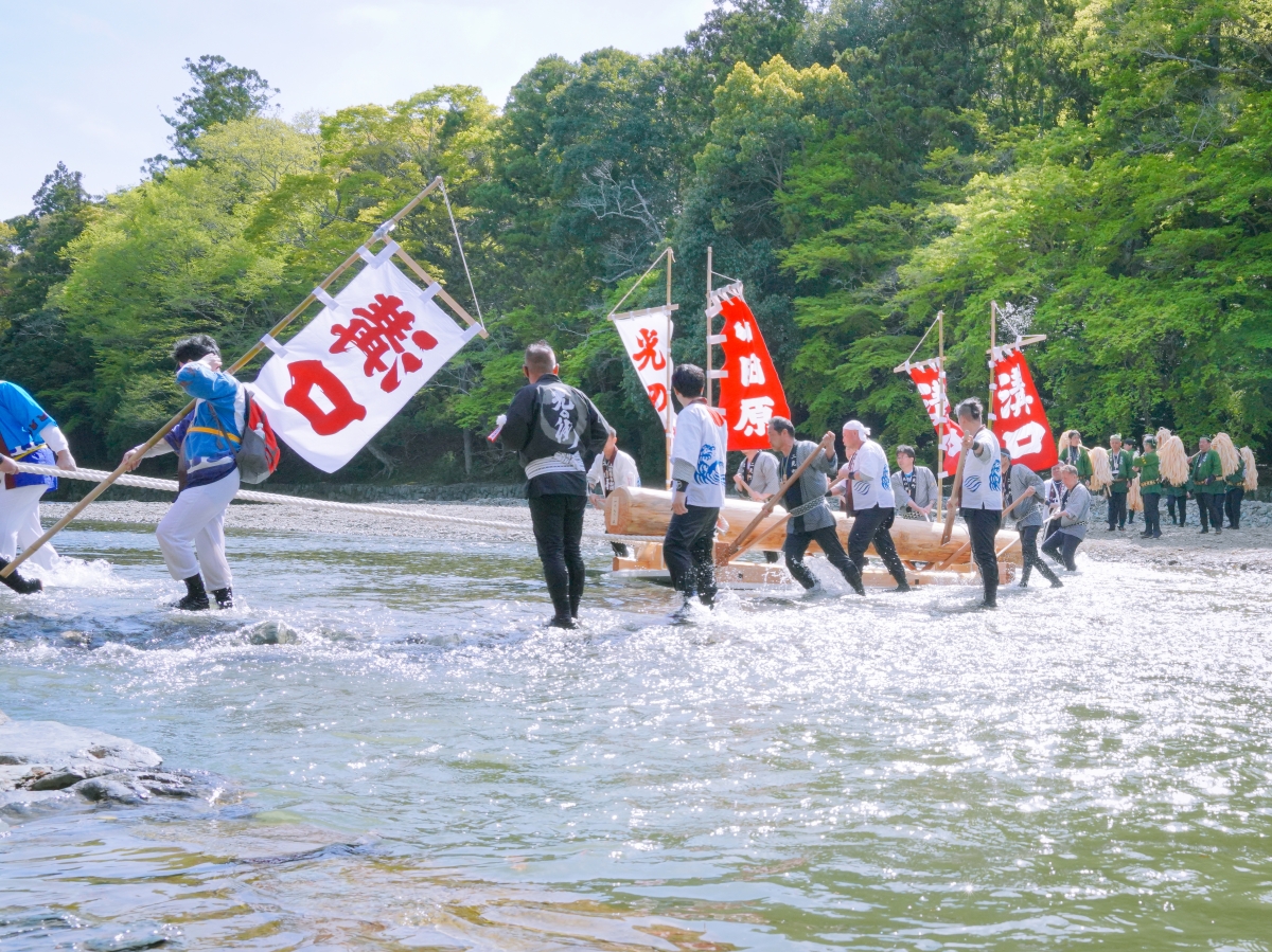 五十鈴川をさかのぼって御用材を伊勢神宮内宮まで運ぶ行事「御木曳」(川曳)始まる