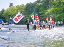 五十鈴川をさかのぼって御用材を伊勢神宮内宮まで運ぶ行事「御木曳」(川曳)始まる