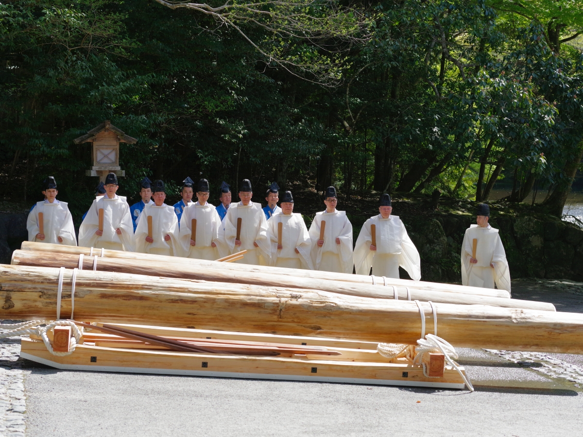 神領民と言われる伊勢市民らが4月12日、第63回式年遷宮(2033年)で新しく建て替える社殿の建築用材を神宮内に引き入れる伝統行事「御木曳(おきひき)」の最初の行事「御木曳初式(おきひきぞめしき)」が行われた。
