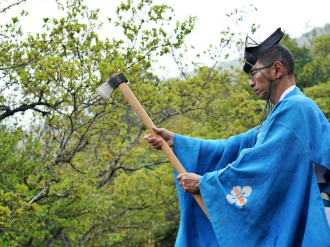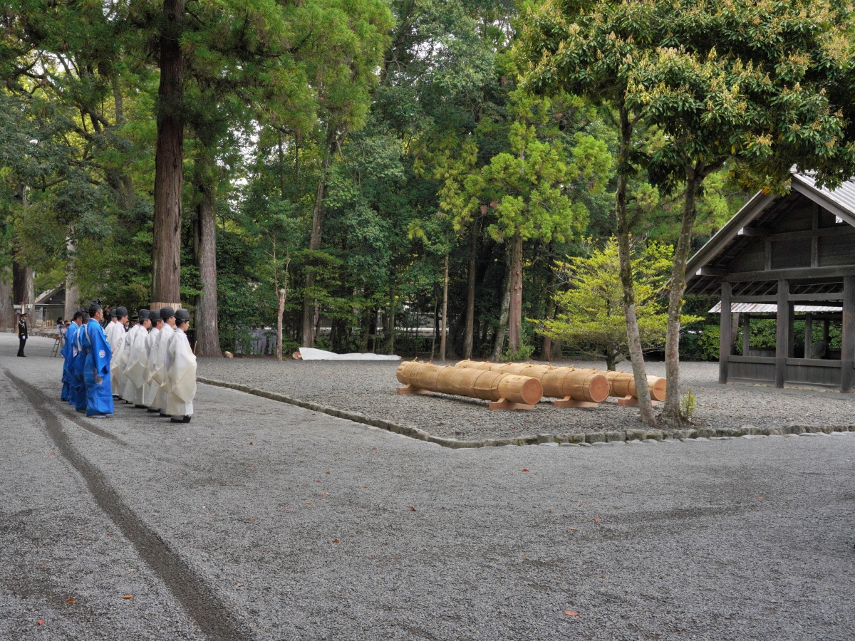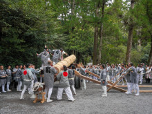 神領民と言われる伊勢市民らが4月12日・13日の2日間、第63回式年遷宮(2033年)で新しく建て替える社殿の建築用材を伊勢神宮内に引き入れる伝統行事「御木曳初式(おきひきぞめしき)」が行われた。