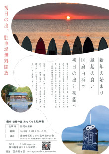 志摩「国府の浜」から初日の出と初富士を、駐車場無料に 「国府神社」限定お守り500体