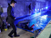 鳥羽水族館の入社式は巨大水槽の中