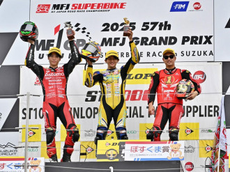 伊勢市の2輪チーム「AKENO SPEED(アケノスピード)」(伊勢市小俣町)所属の井手翔太選手が10月26日、鈴鹿サーキット(鈴鹿市、1周5,821メートル)で行われた「2025 MFJ全日本ロードレース選手権シリーズ 第7戦 第57回 MFJグランプリ スーパーバイクレース in 鈴鹿」最終戦ST1000クラス決勝レースで優勝を飾った。