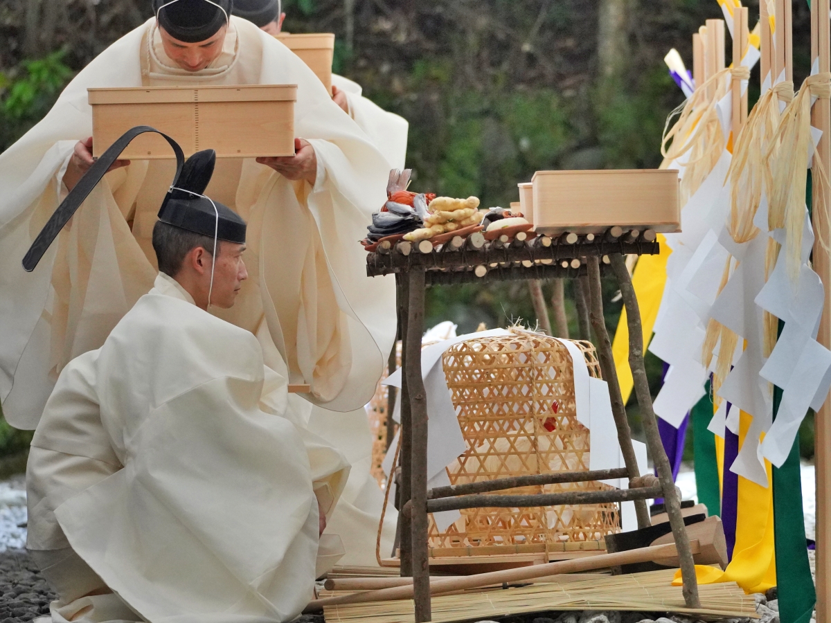 第63回神宮式年遷宮の祭典の一つ「御船代祭(みふなしろさい)」が9月19日、伊勢神宮内宮(ないくう)と同様に外宮(げくう)内の土宮東方に設けられた祭場「宮山祭場」で執り行われた。