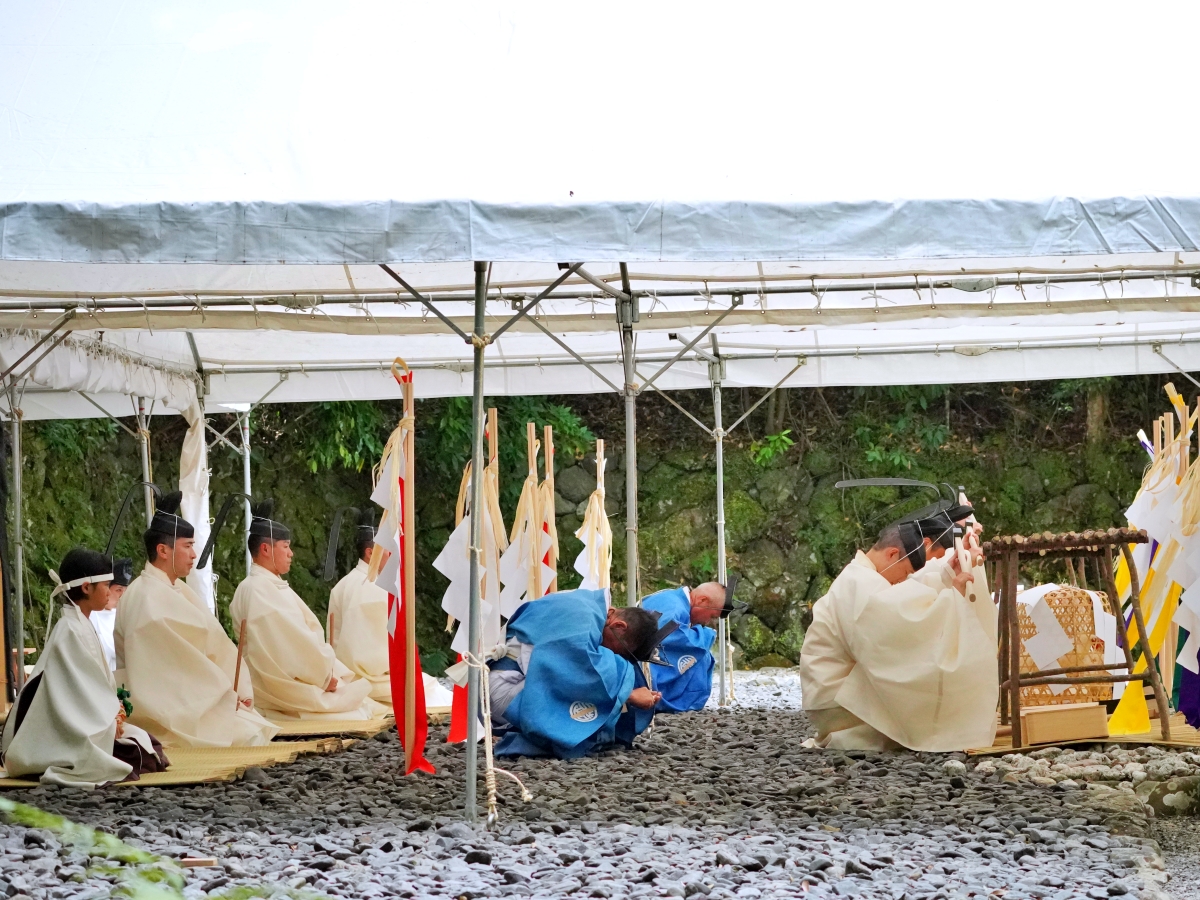 第63回神宮式年遷宮の祭典の一つ「御船代祭(みふなしろさい)」が9月19日、伊勢神宮内宮(ないくう)と同様に外宮(げくう)内の土宮東方に設けられた祭場「宮山祭場」で執り行われた。