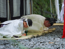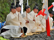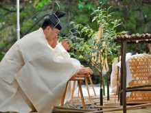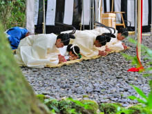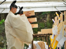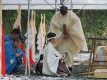 第63回神宮式年遷宮の祭典の一つ「御船代祭(みふなしろさい)」が9月19日、伊勢神宮内宮(ないくう)と同様に外宮(げくう)内の土宮東方に設けられた祭場「宮山祭場」で執り行われた。