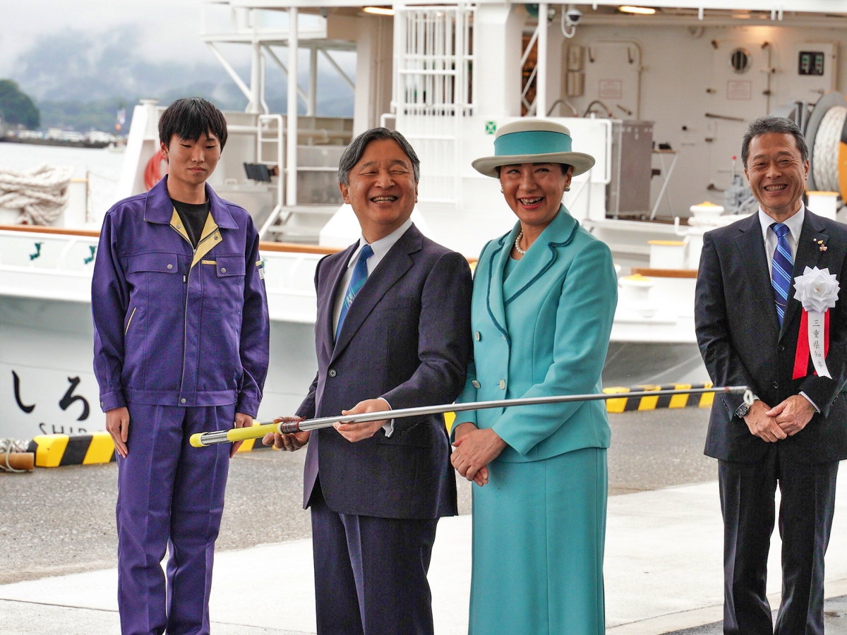 天皇皇后両陛下「全国豊かな海づくり大会」ご出席、南伊勢町・宿田曽漁港 釣り竿を持つ天皇陛下