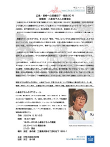 広島で8歳の時に被爆した小倉桂子さんの講演会が12月15日、「旅荘海の蝶」(伊勢市二見町)で開催される。