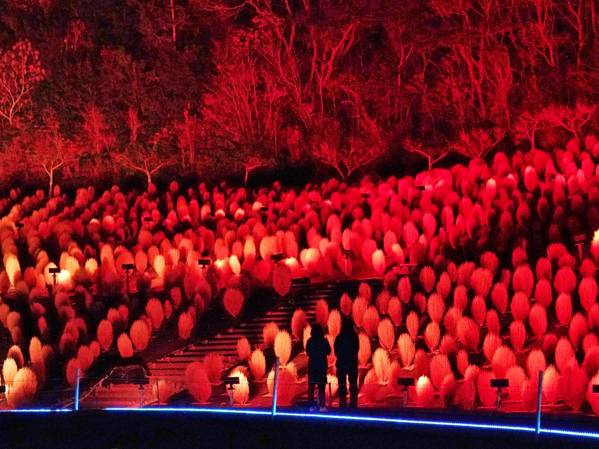 志摩市観光農園クリスマスライトアップ 5200本のコキア、色とりどりに
