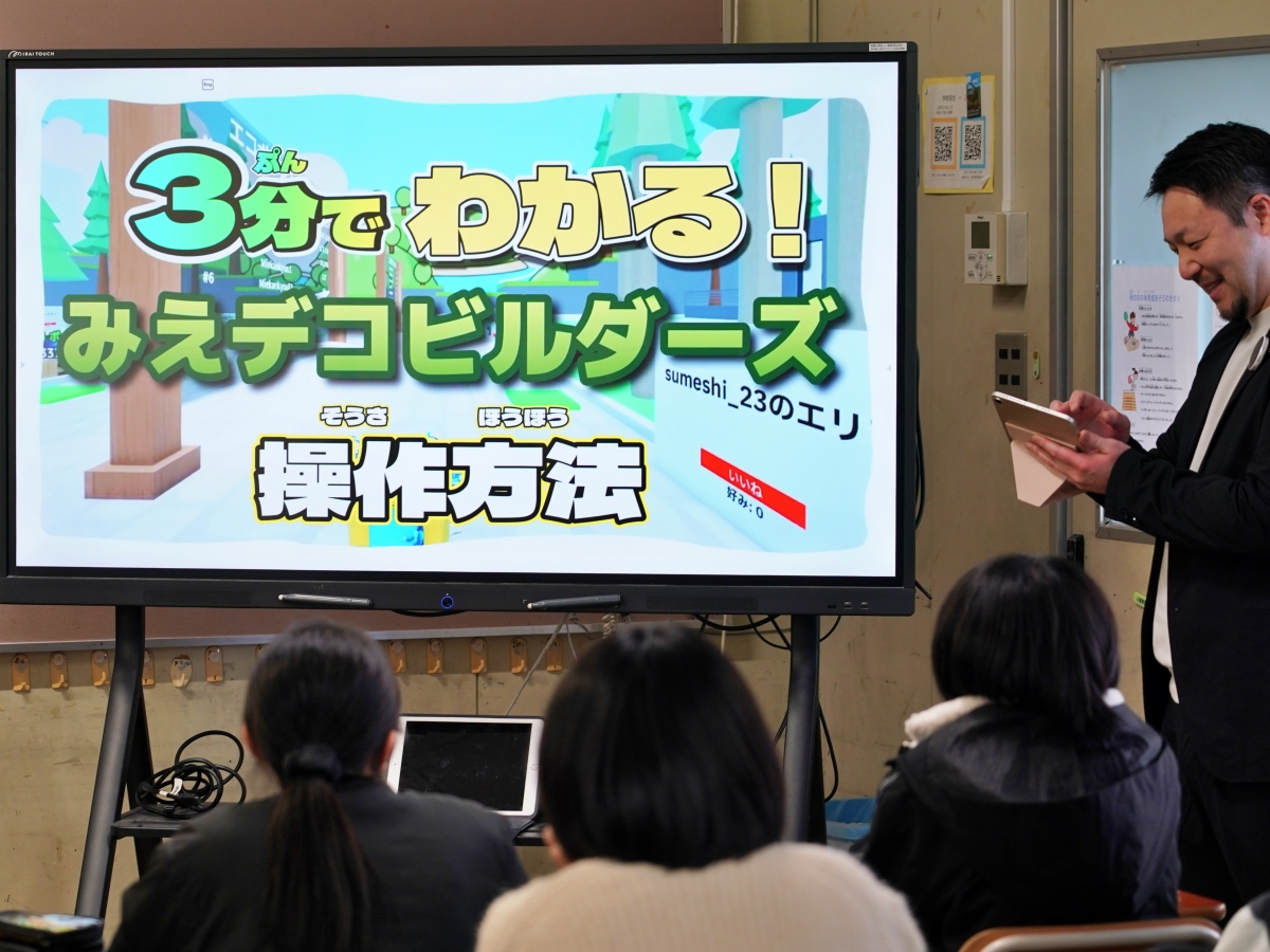 ロブロックス上のゲーム「みえデコビルダーズ」を使い地球環境教育授業 俳優の植木等さんの母校「四郷小学校」で