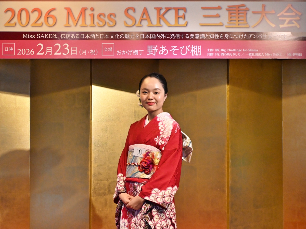 三重県の日本酒の魅力を全国・世界に発信していく代表者を選ぶ「2026 Miss SAKE 三重大会」が2月23日、おかげ横丁・野あそび棚(伊勢市宇治浦田)で行われ、三重代表に山口華子さんが選ばれた。
