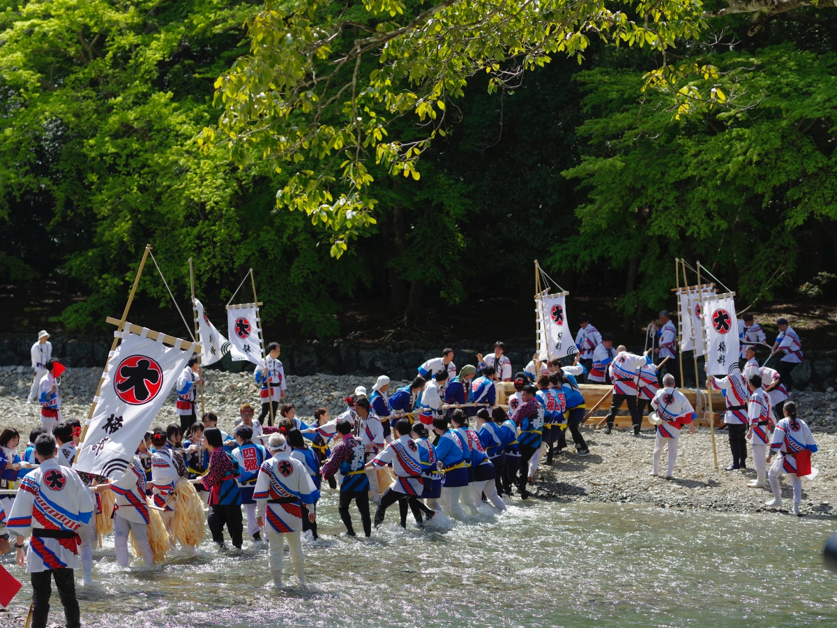 五十鈴川をさかのぼって御用材を伊勢神宮内宮まで運ぶ行事「御木曳」(川曳)始まる