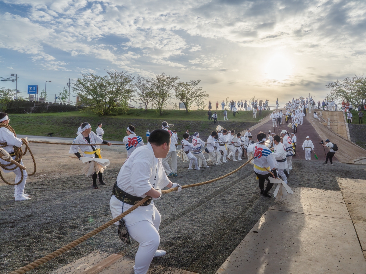 神領民と言われる伊勢市民らが4月12日・13日の2日間、第63回式年遷宮(2033年)で新しく建て替える社殿の建築用材を伊勢神宮内に引き入れる伝統行事「御木曳初式(おきひきぞめしき)」が行われた。