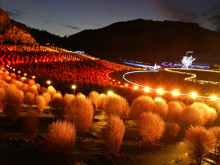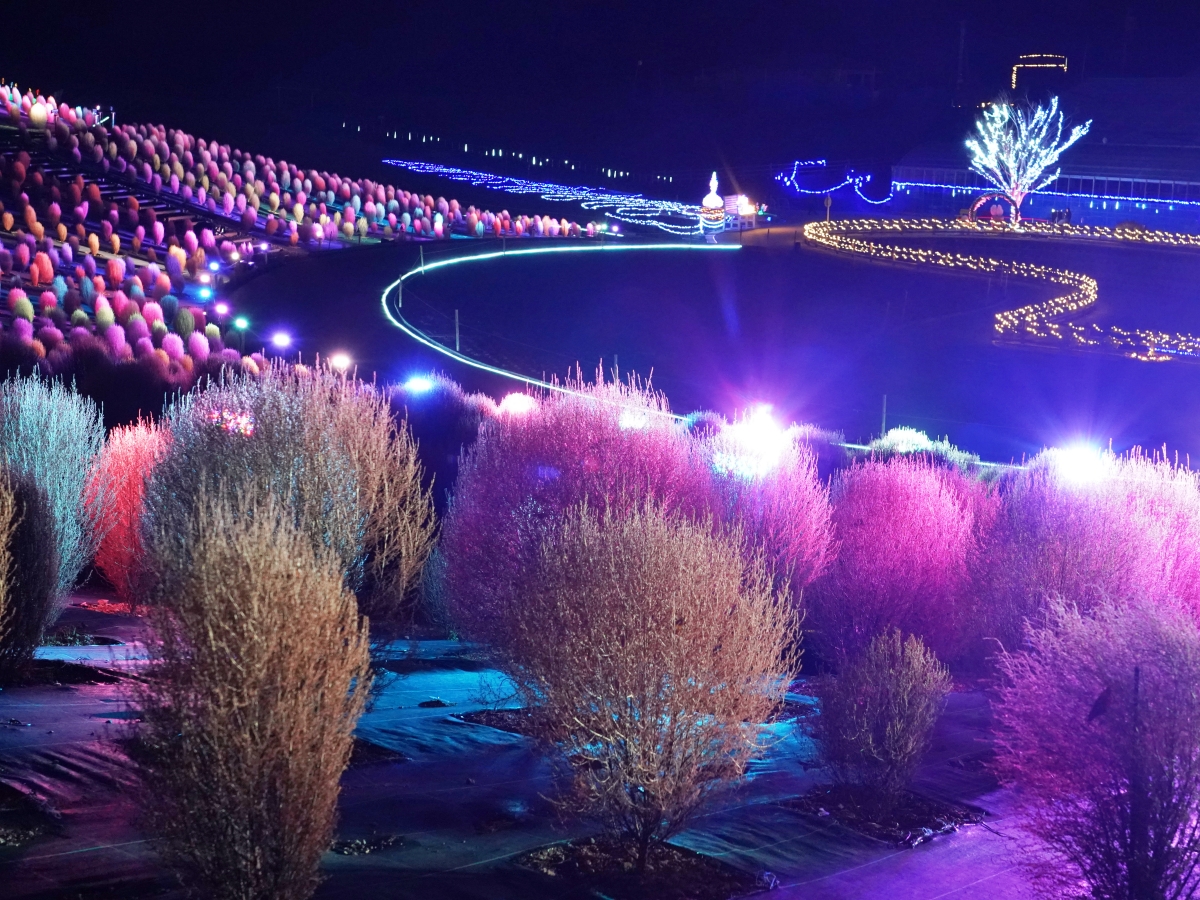志摩市観光農園クリスマスライトアップ 5200本のコキア、色とりどりに