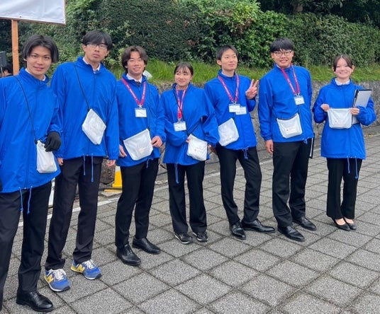 第 57 回大会の様子 寄贈したサコッシュを身に着けた学連のスタッフたち