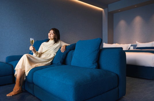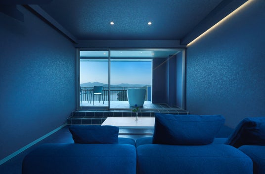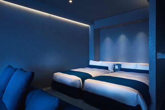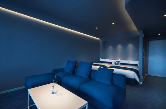 リラックス効果のあると言われている青色。まるで母なる海に包まれているかのような客室で、心身を解きほぐす寛ぎの時間をお過ごしいただけます。