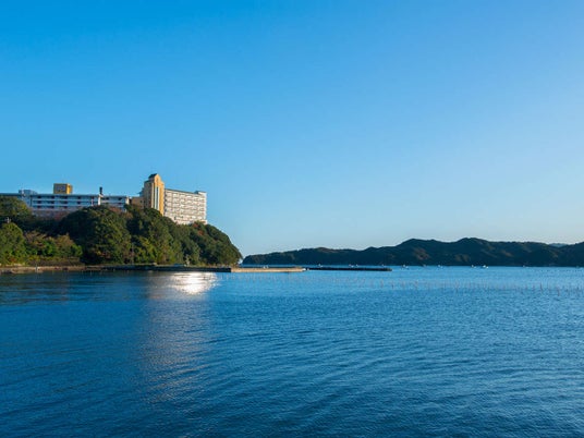 「旅荘 海の蝶」は、伊勢湾を望む池の浦の岬に佇み、伊勢志摩・鳥羽観光に最適なロケーションに位置しております。敷地に隣接する伊勢神宮内宮の摂社「粟皇子(あわみこ)神社」、NHKテレビドラマ「おしん」の撮影地に選ばれたことで知られる「おしんの浜」を有しております。夏には白浜が美しいプライベートビーチ「池の浦シーサイドビーチ」の海水浴で賑わいます。