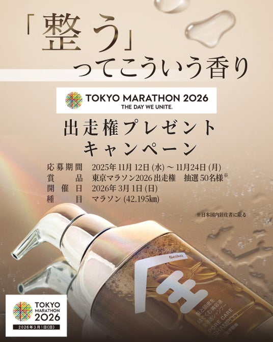 王子製薬株式会社(東京営業所:東京都渋谷区、以下、当社)は 、ヘアケアブランド「Seika 全」の東京マラソン2026オフィシャルパートナー就任を記念し、「東京マラソン2026」への出走権(参加費等当社負担)が当たる抽選プレゼントキャンペーンを2025年 11月 12日(水)~11月 24日(月)の期間で実施します。 “走る人”のコンディションを髪と香りから整える新しいセルフケア文化を、Seika 全は本キャンペーンを通して提案してまいります。