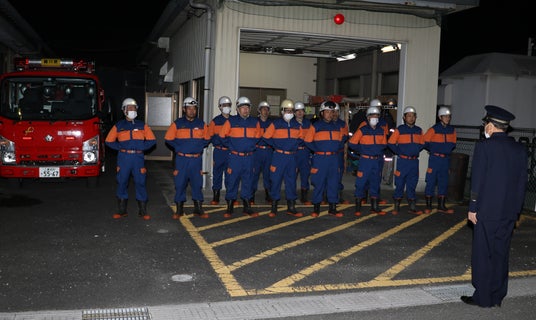 12月28日(日)には、消防本部消防署敷地内で年末特別警戒出発式を実施します。出発式では、町長や議長の激励挨拶、来賓(消防委員会委員長、四日市西警察署長、四日市西警察署地域課長)の紹介を行うほか、参加人員および車両の報告の後、消防団7分団10班及び消防本部、消防署による特別警戒活動の出発が行われます。なお、悪天候時は消防署西側車庫内にて実施します。