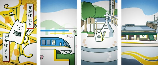 看板の一部にはQRコードを組み込み、スマートフォンで読み取ると、おかげ犬が名古屋から伊勢へ旅する様子を描いたショートアニメーションが再生されます。ホーム上で「伊勢旅行の始まり」を感じていただけるよう、伊勢神宮の参道やおかげ横丁の賑わい、五十鈴茶屋でくつろぐひとときなどを、おかげ犬の穏やかな視点から切り取った内容としています。