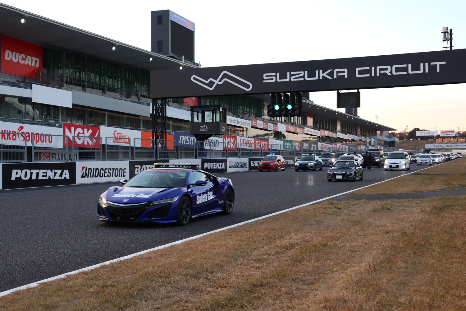 本イベントは定期的に開催しており、毎回定員を超える応募が寄せられる人気イベントで、JAF会員の親睦を深めるとともにモータースポーツを身近に感じてもらうことを目的としています。F1日本グランプリや8時間耐久ロードレースの開催地として有名な鈴鹿サーキットにおいて、ホームストレート上での記念撮影をお楽しみいただいた後、マーシャルカー(※)先導のもとマイカーでフルコース(5.807km)を2周走行していただけます。