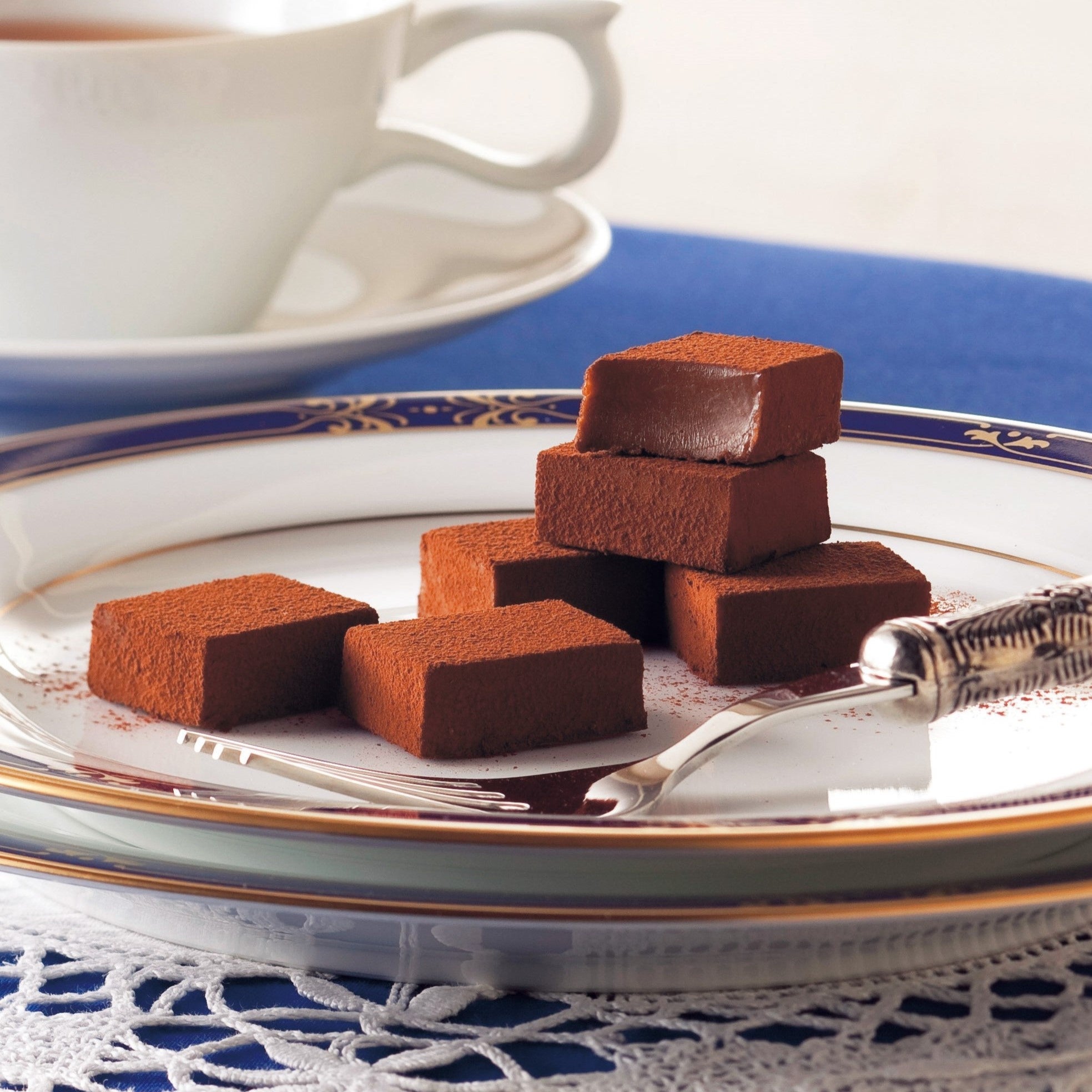 ロイズの生チョコレートの代表作[オーレ]。ミルクチョコレートに北海道の生クリームと風味付けの洋酒をブレンドした、まろやかでやさしい味わいです。