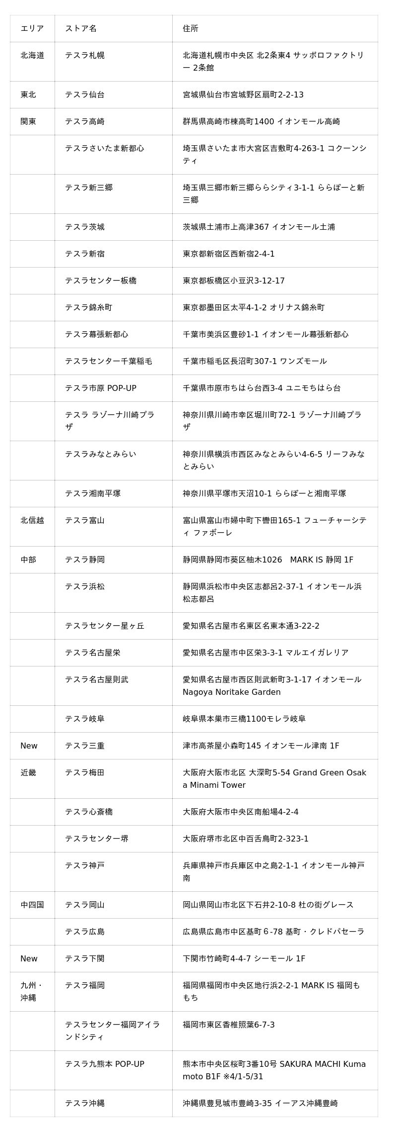 全国のテスラストア(32店舗)・期間限定ストア(2拠点)へ