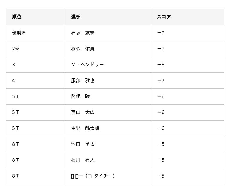 ※優勝はプレーオフの末に決着