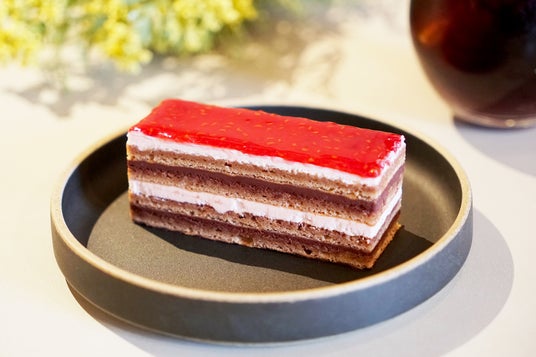 カカオをたっぷりと染み込ませたカカオジョコンド生地に、濃厚なチョコレートガナッシュと甘酸っぱいラズベリーバタージャムを重ねた、8層仕立ての一品です。